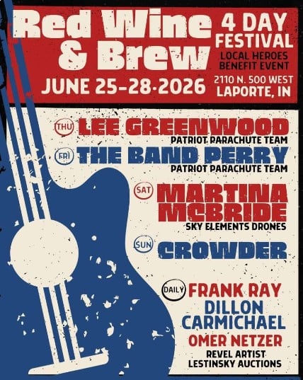 Annual Local Heroes Benefit Event held at “The Summit”, a farm field venue off of Johnson Road on County Road 500 West, the highest part of La Porte County, Indiana! This annual event features some of Nashville’s greatest artists with some pretty incredible event surprises every year. Community sponsors have built this into the largest concert in the county, and the largest benefit concert event to support and recognize first responders in our region! Full schedule posted closer to event date.