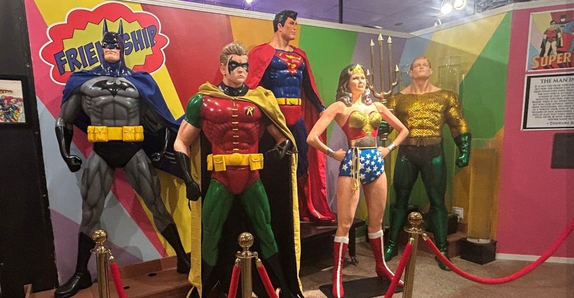Holy comic book history Batman! The only museum of its kind in the world, Hall of Heroes boasts a collection of over 60,000 comic books and 10,000 action figures, toys, and props from beloved super hero television shows and films. Channel your inner caped crusader in a replica of the Bat Cave set from the 1960’s Batman TV series or fend off foes with the original shield used in the film Captain America: First Avenger.